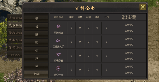 玩家通过打通经脉后可以学习各种招式技能,PK打怪屡试不爽~招式秘籍可通过完成成就或幸运罗盘获得。