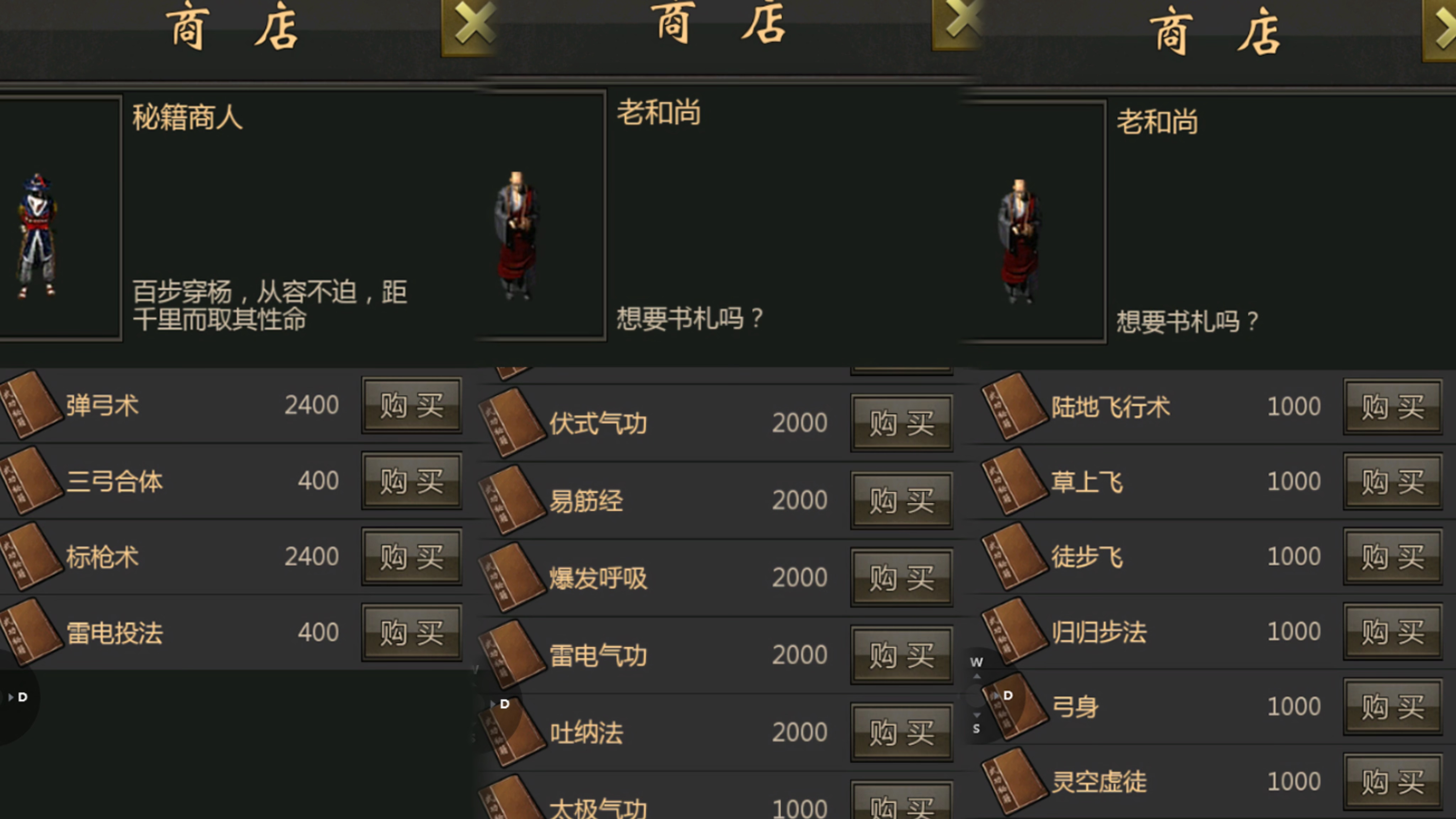 在「老和尚」这我们同样需要购买最便宜的一本心法和一本步法。