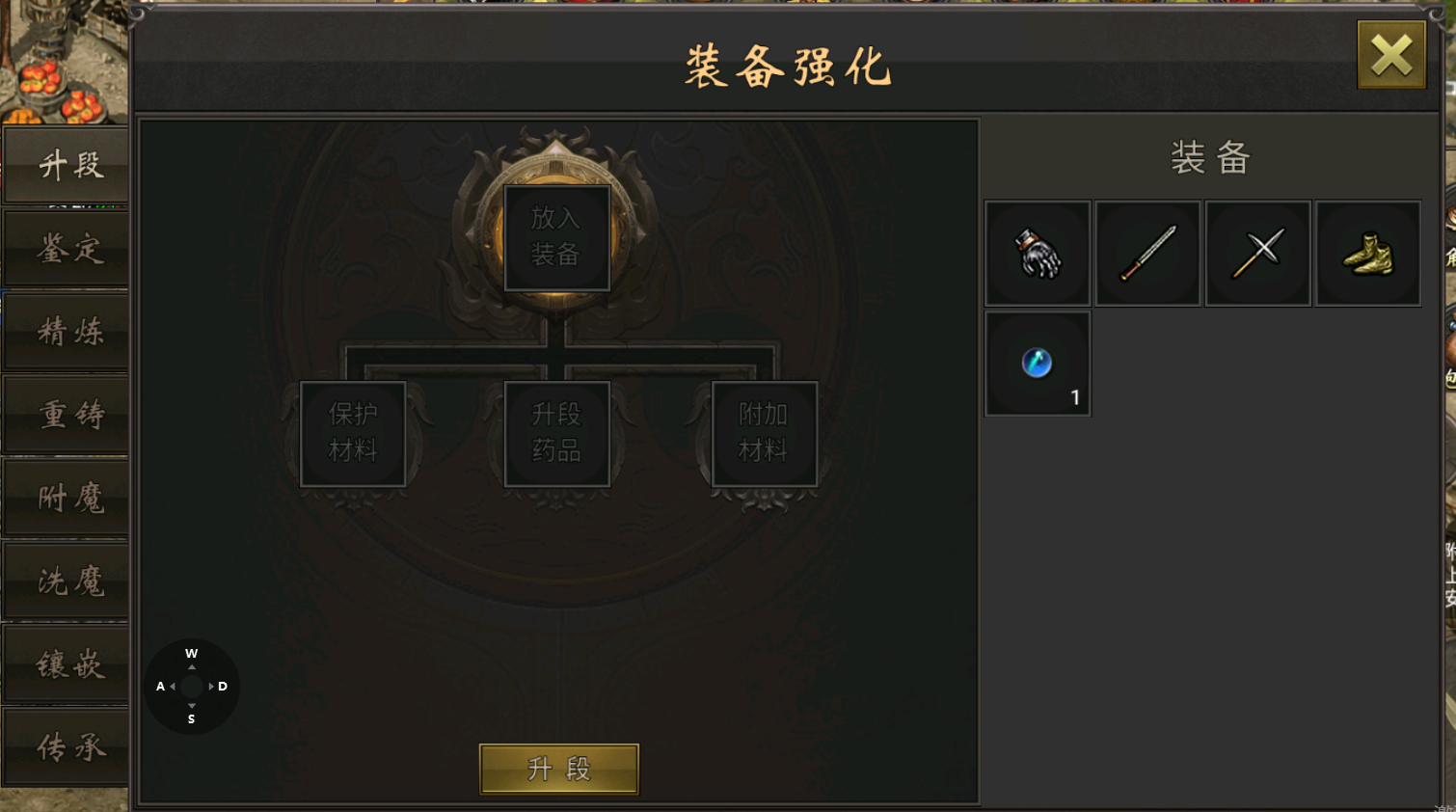 注意:升段的武器是可以由我们自己选择的,还记得之前买的无击阵吗?因为是槌法,所以这里我们优先选择升段「黄龙斧」,另外一个就看玩家自己喜好了。